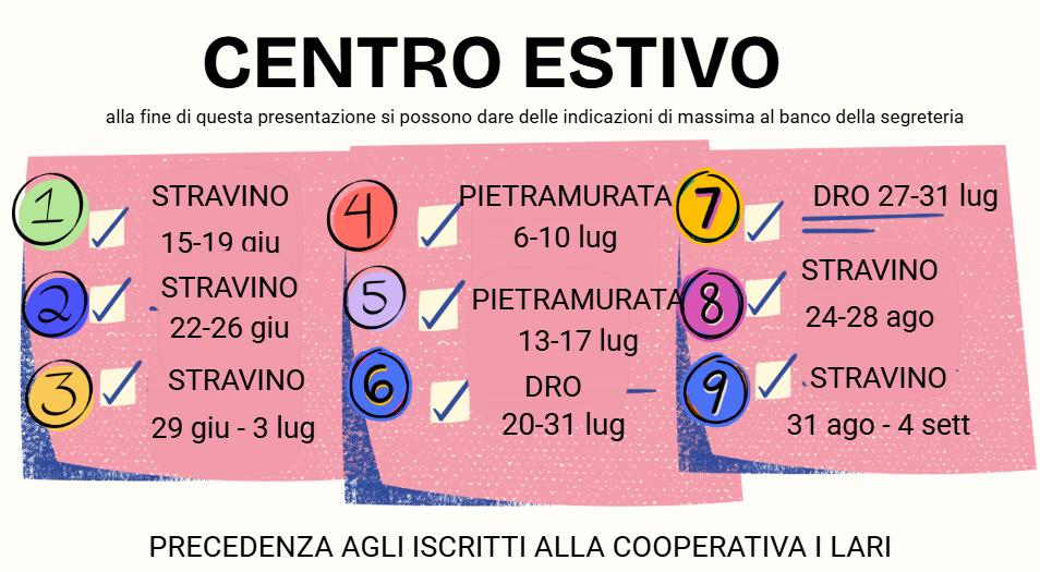 L'Edizione 2026 del Centro Estivo si svolgerà dal 15 giugno al 5 settembre (con pausa dal 3 al 23 agosto)