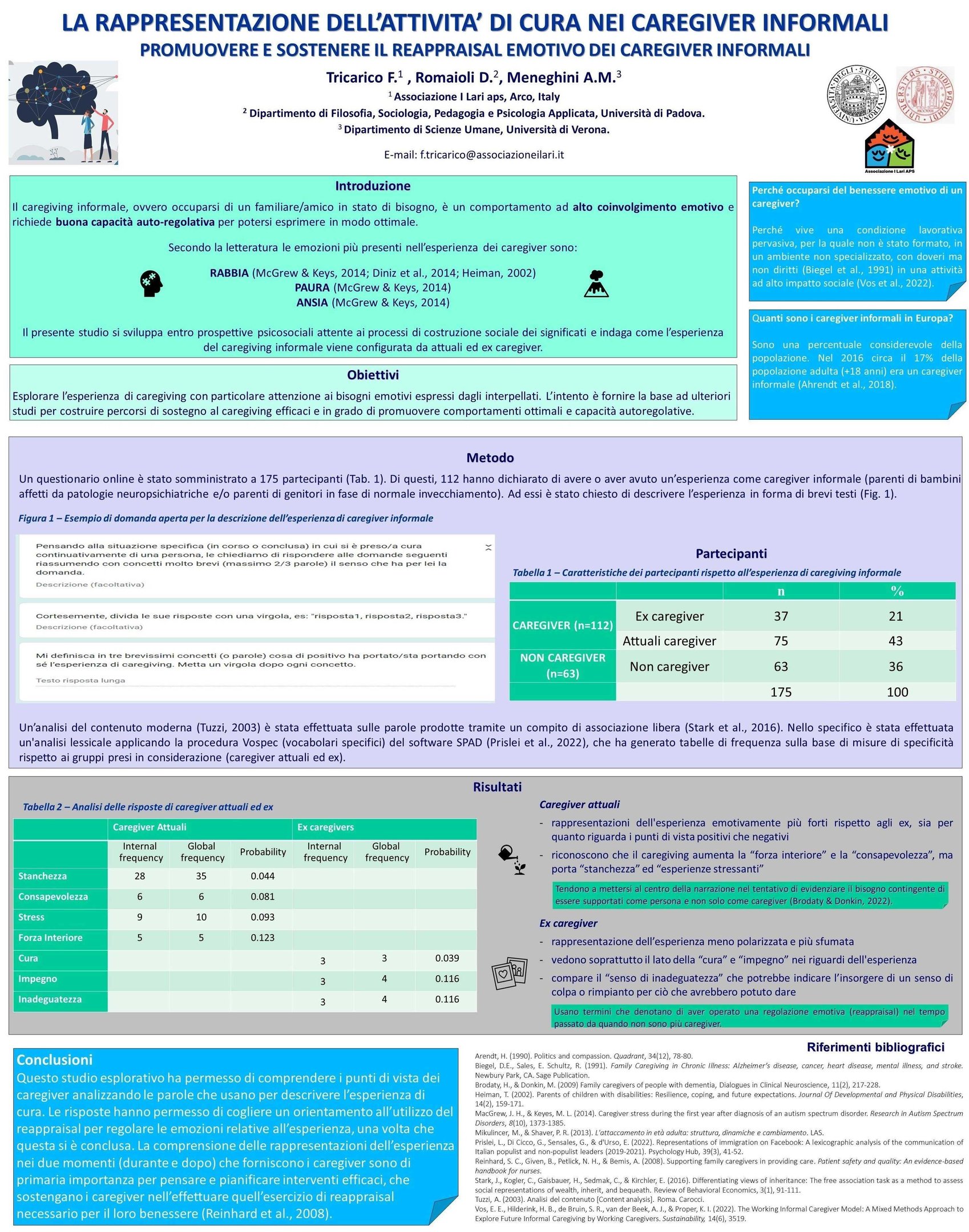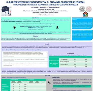 16- Tricarico, F., Romaioli D., Meneghini A.M (2024). The representations of caregiving in informal caregivers. The Family Journal. https://doi.org/10.1177/10664807241269474